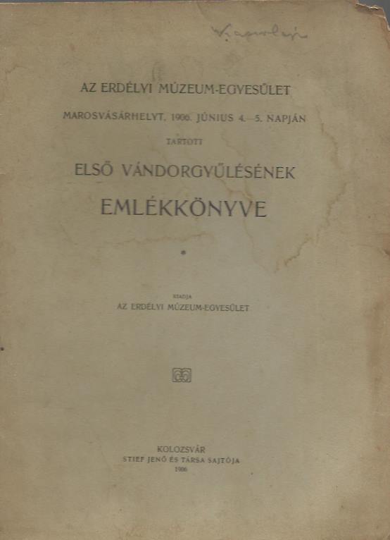 Az Erdélyi Múzeum-Egyesület Marosvásárhelyt 1906 június 4-5 napján tartott első vándorgyűlésének Emlékkönyve